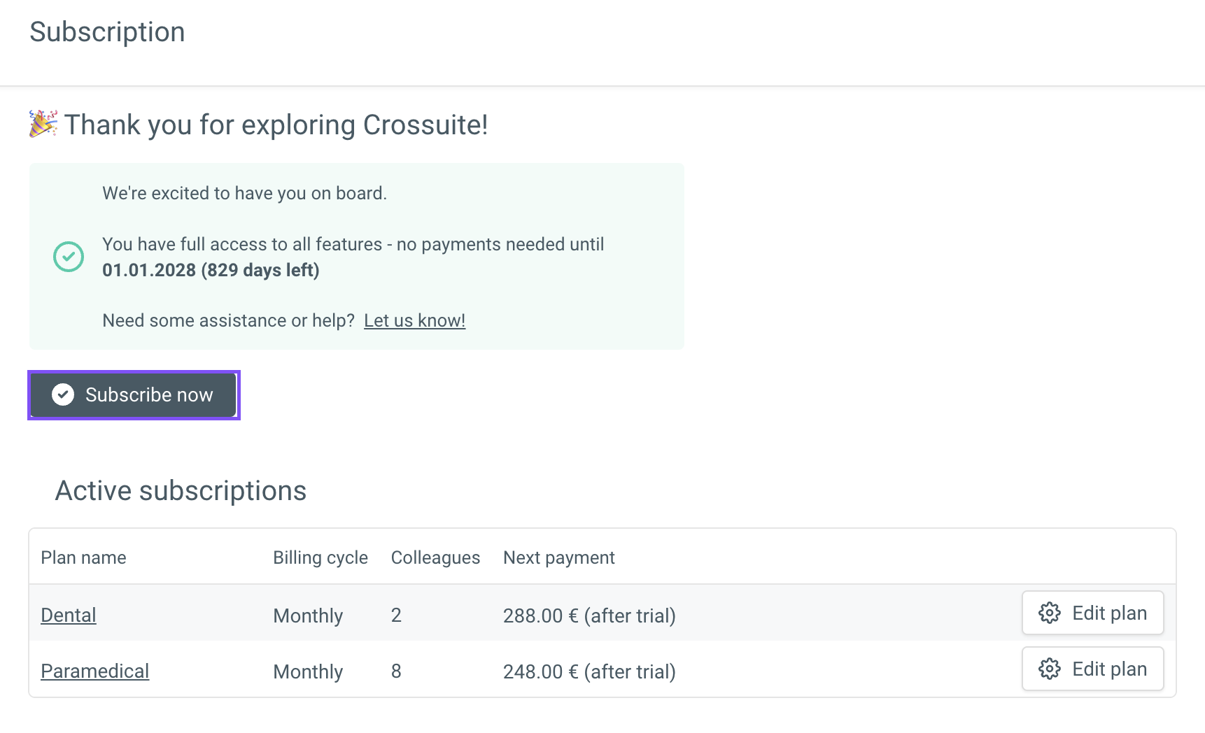 Tip: It's useful to activate temporary employees (< 1 year) with a monthly subscription. This allows you to set the colleague as inactive once their interim period has ended. For permanent employees, we recommend the annual subscriptions since you ...