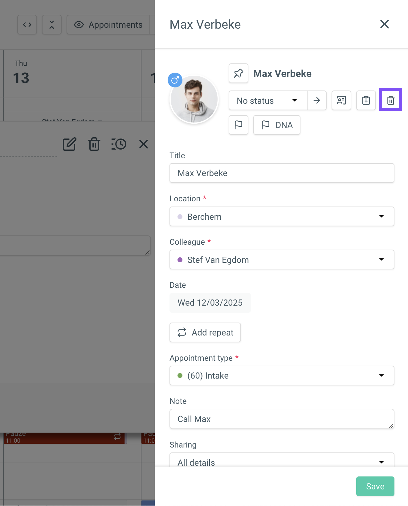 For example, if you want to make a separate note for yourself, you unlink the linked patient via the dustbin-icon.