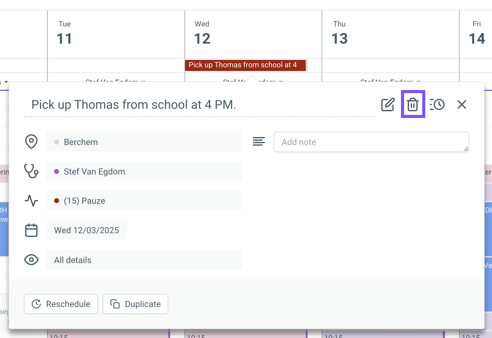 Modifying / deleting an appointment