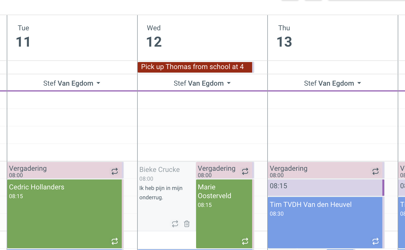 To schedule appointments or events that repeat every day, week, month, or year, you have the option to create a repeating appointment. 1. Create a repeat When creating an appointment, click the [Add repeat] button. Then you get the option to repeat ...