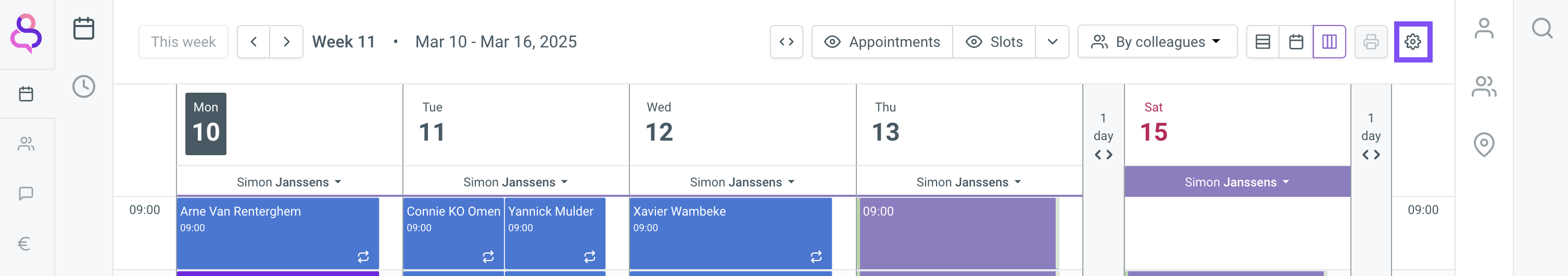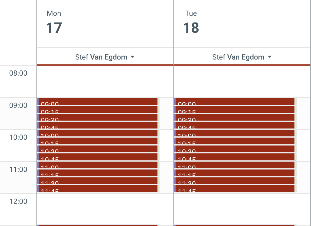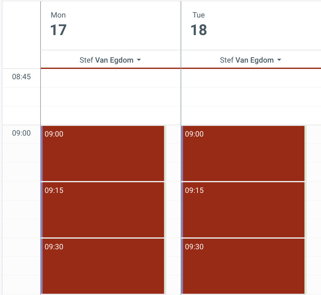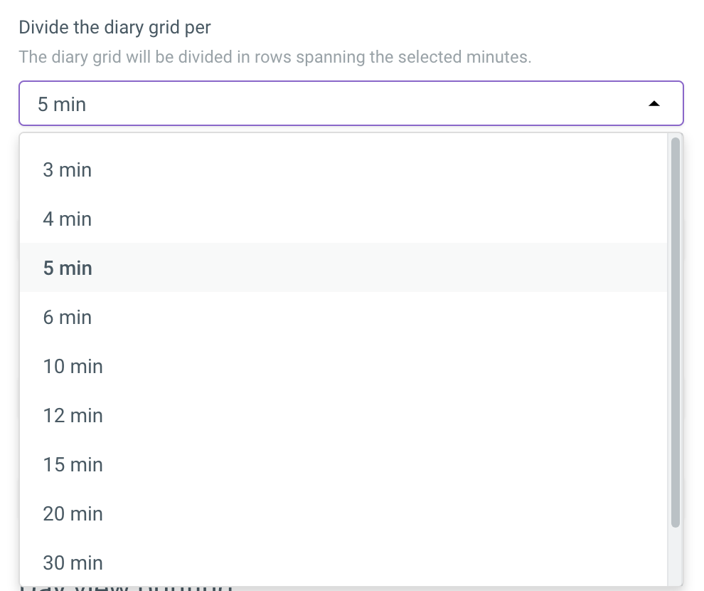 It is important that you consider the duration of your appointment types. We advise taking the greatest common divisor of your appointment durations. For example, if you have appointment types of 15 minutes and 50 minutes, it is best to take a division of 5 minutes. Of course, you can test the different layouts and see what works best for you.