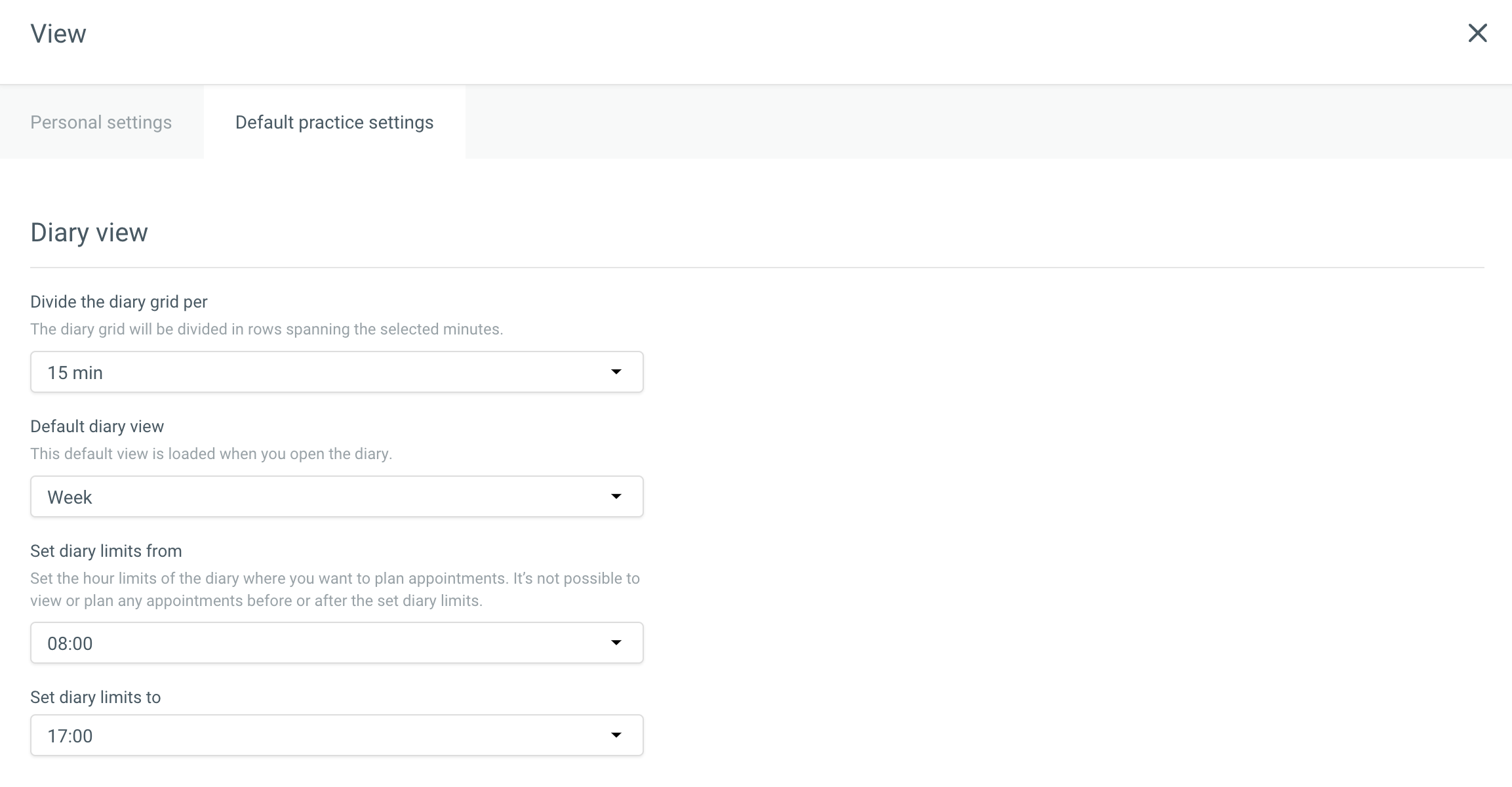 On the top of the page you have the choice to set this up for yourself personally or, if you have the necessary rights, for everyone in the practice.