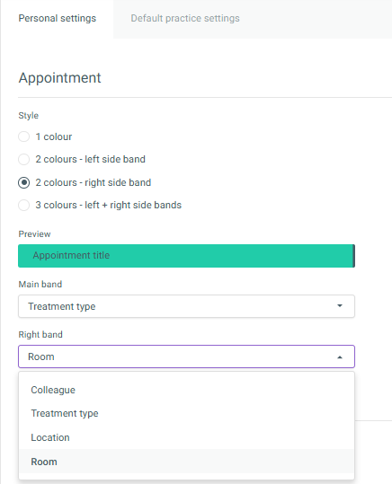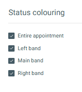 At the bottom of the page, select how the status color should be displayed for appointments. Also see: Creating and setting appointment statuses
