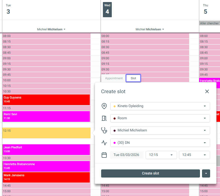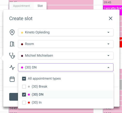 At the top of the appointment pop-up, select [Slot].