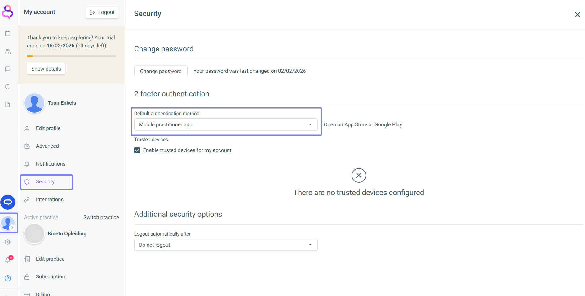 Go to [My account] > [Security]. In the tab 2-factor authentication, you change the default to your preferred log in method.