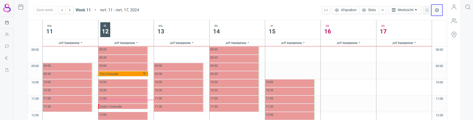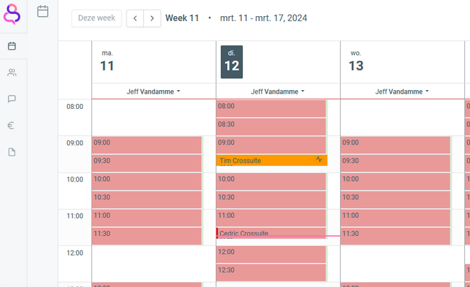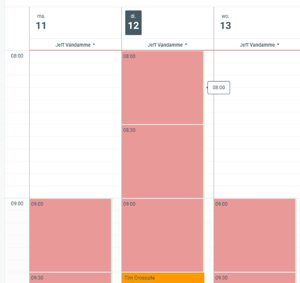 - Division du temps : L'agenda est divisé en lignes de X minutes.