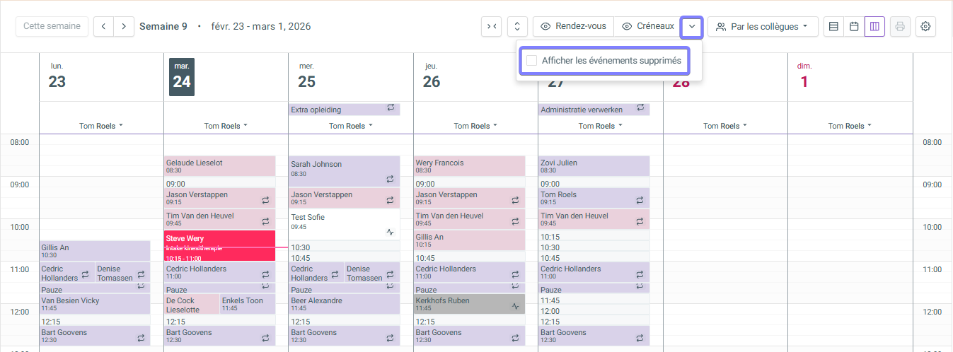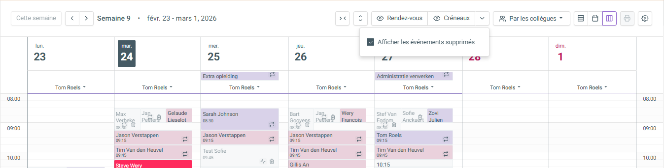Affichage des rendez-vous supprimés