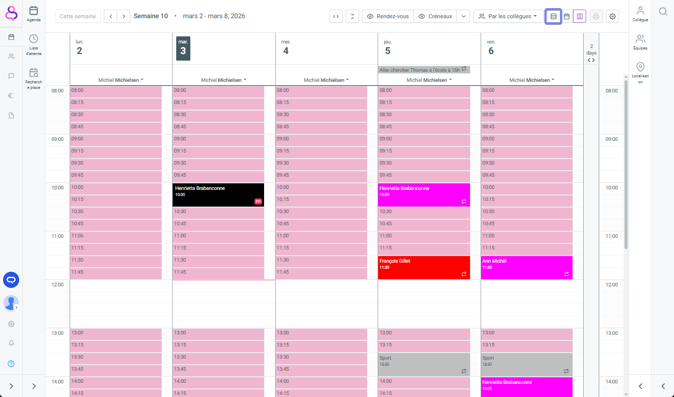 La planification de votre journée s’ouvre alors sous forme de vue en liste de tous vos rendez-vous, traitements, réservations en ligne ou tâches.