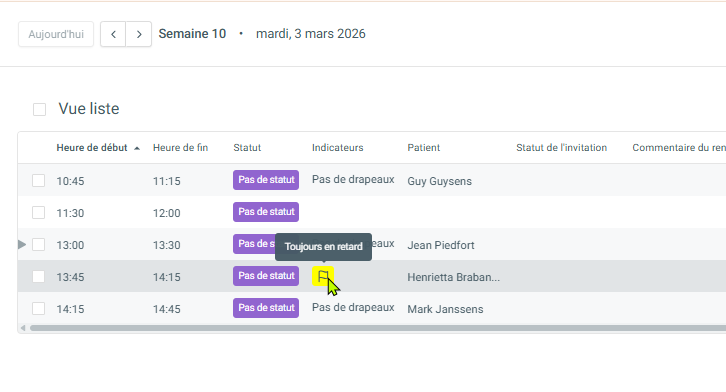 Les indicateurs que vous créez pour un patient contiennent souvent des informations importantes ; vous pouvez les consulter facilement via le registre en plaçant votre souris sur l’icône de drapeau