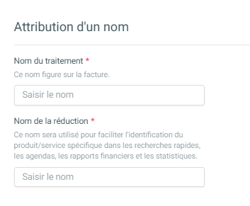 Le nom du traitement sera indiqué sur la facture et est visible pour le patient.