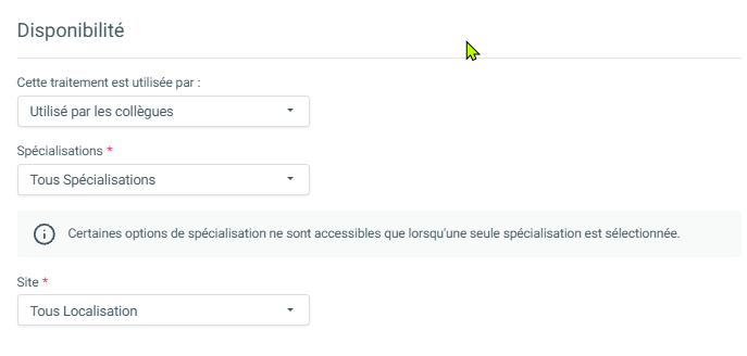 Ici, nous déterminons quel thérapeute, quelle discipline et quel site sont autorisés à utiliser ce type.
