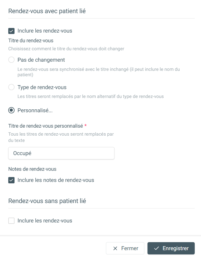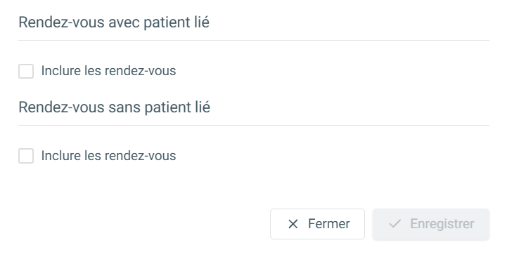 Sélectionnez uniquement certains types de rendez-vous ou tous les types.