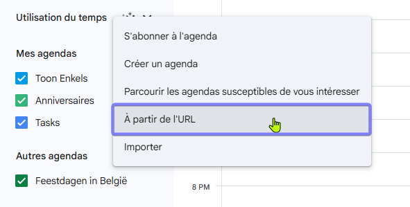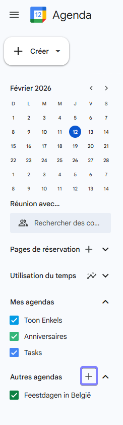 Allez dans votre agenda Google. Cliquez sur [+] chez Autres agendas.
