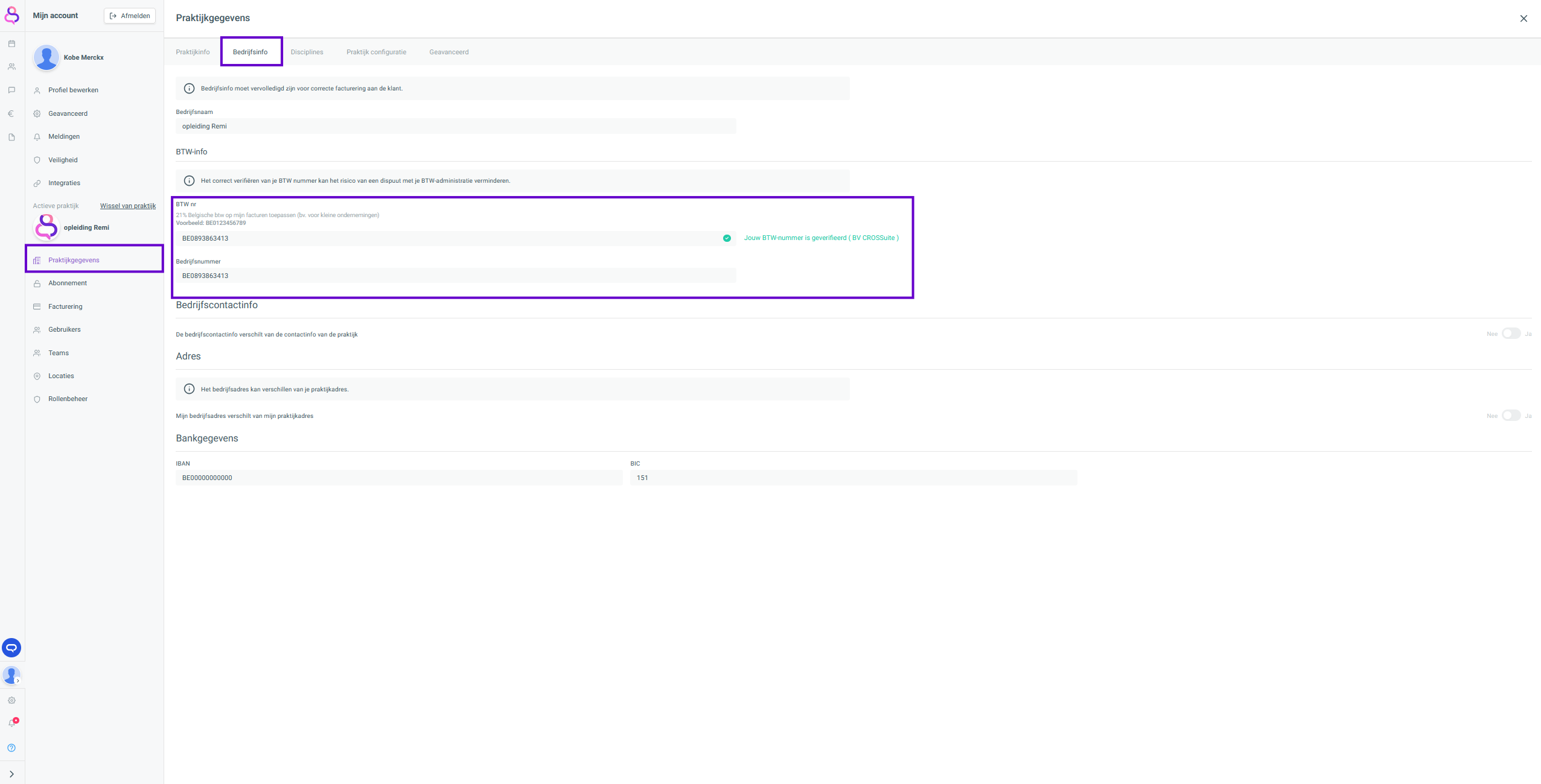 Mijn account > Praktijk Integraties. Klik bij Peppol op