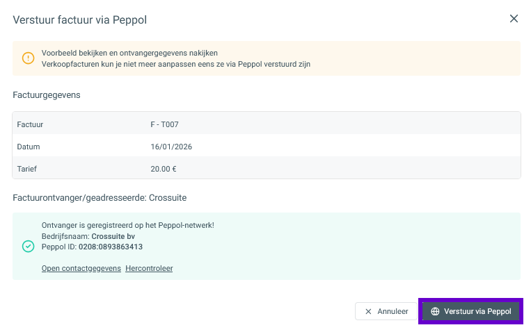 Controleer de gegevens van de te verzenden factuur en bevestig met