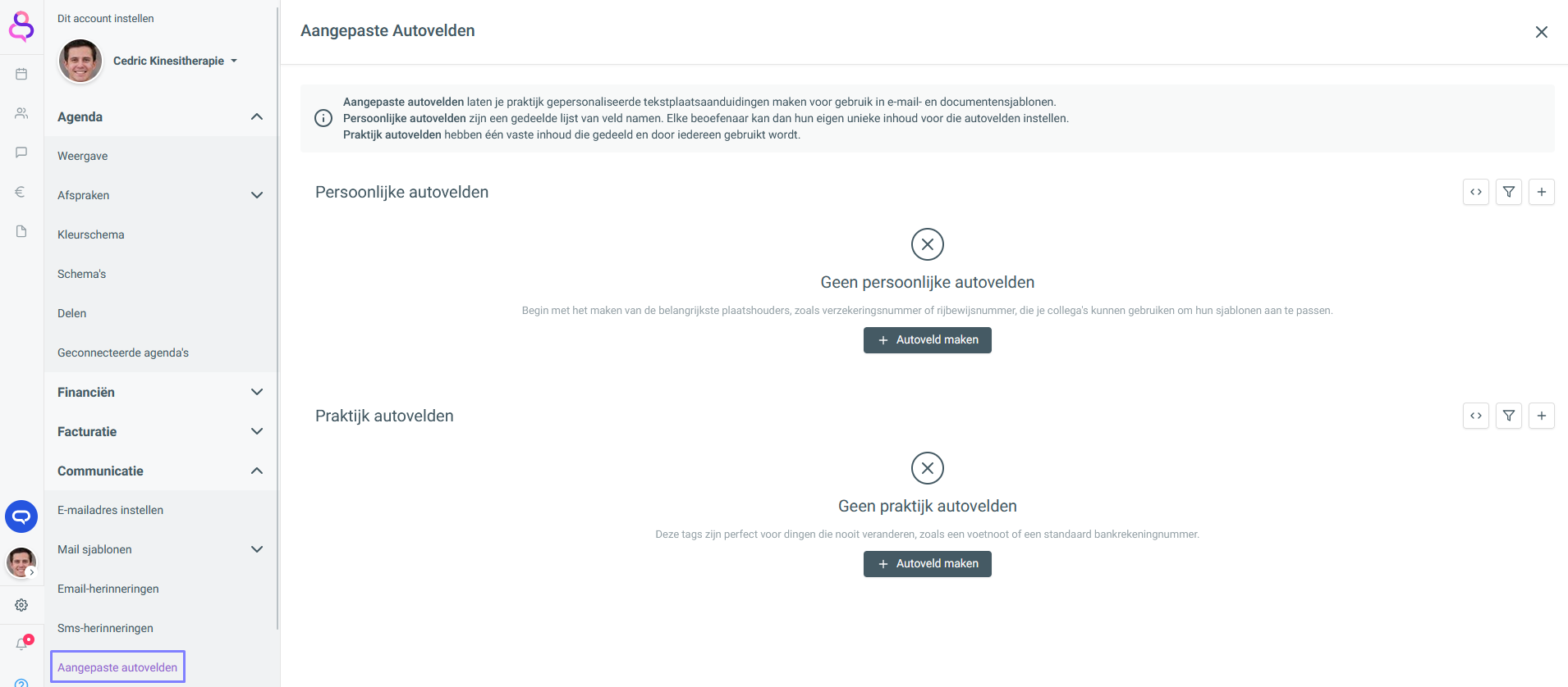 Autovelden toevoegen aan een sjabloon
