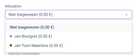 Kies voor 'Niet toegewezen' als je het budget niet aan een bepaalde behandelaar wil linken.