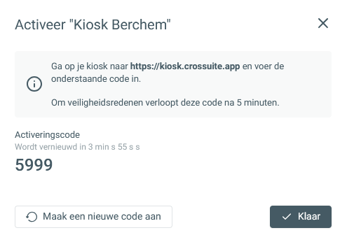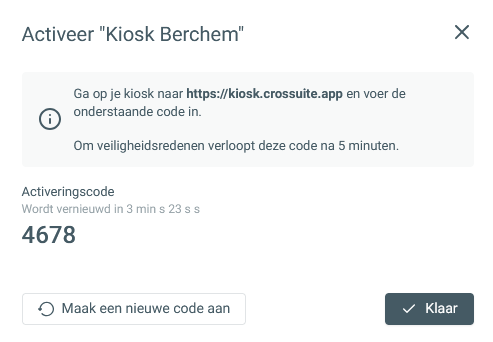 Na de aanmaak van de kiosk opent het scherm met de instructies voor het activeren van de kiosk.